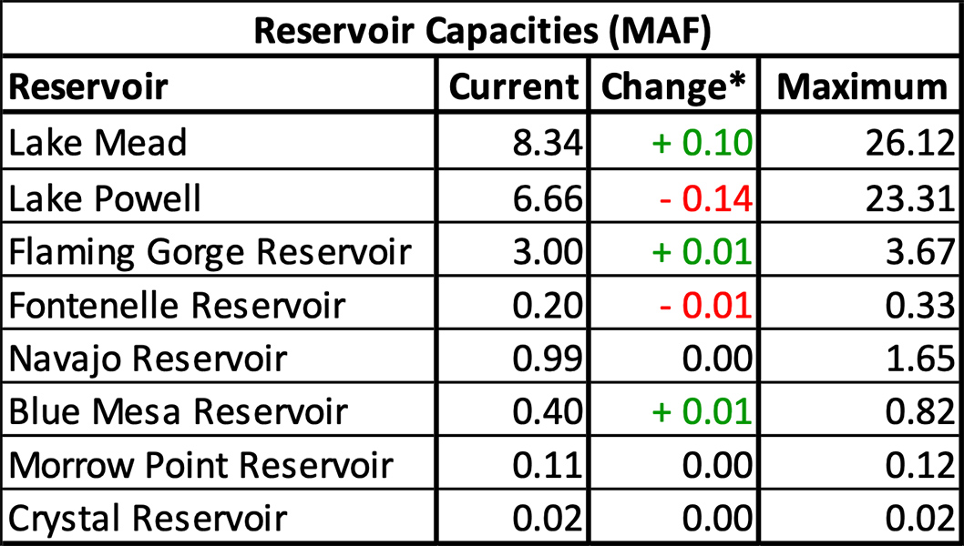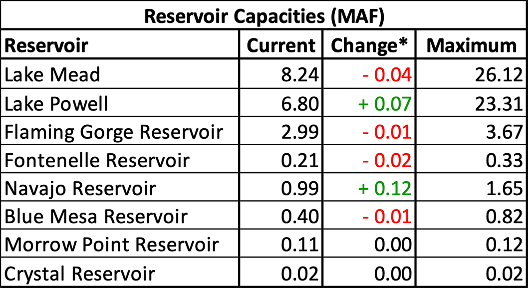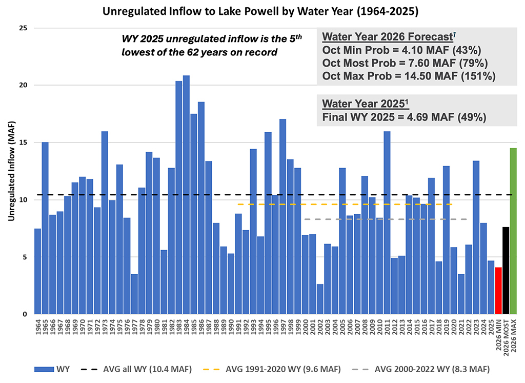 1 Water Year statistics are based on the 30-year period of record from 1991-2020, Average 1991-2020 – 9.60 MAF